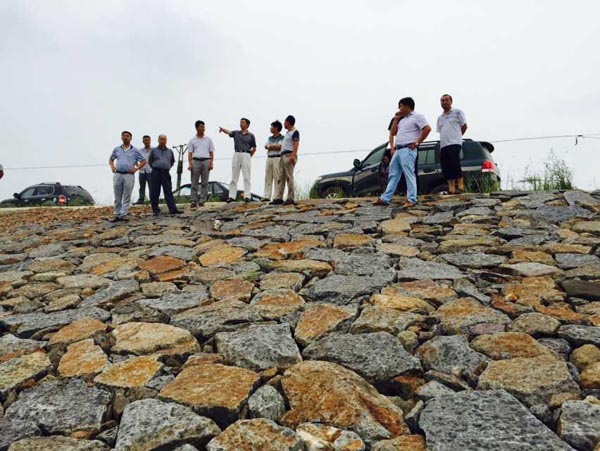 驗(yàn)收工作組成員與專(zhuān)家現(xiàn)場(chǎng)察看工程質(zhì)量