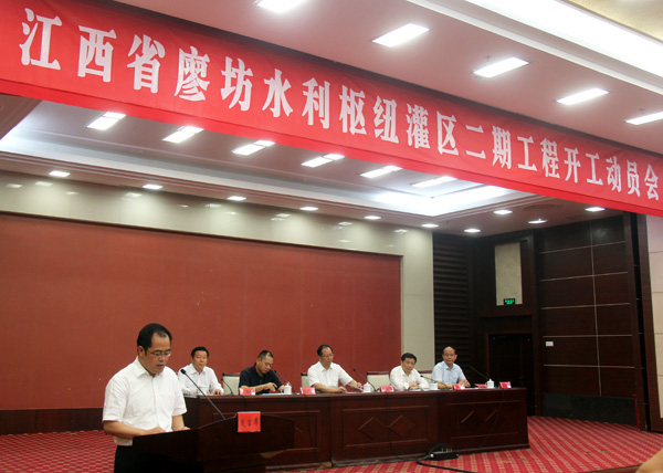 9月22日上午,廖坊水利樞紐灌區二期工程開工動員會召開。省委常委、常務副省長毛偉明出席并講話;市委書記肖毅主持,市委副書記、市長張鴻星致辭,水利部建管司副司長張嚴明、省發改委主任吳曉軍、省水利廳副廳長廖瑞釗參會并講話;公司總經理徐洪良代表項目參建單位在會上作表態發言;省直有關部門領導,撫州市四套領導班子成員,撫州市相關單位領導及項目參建各方代表參加了會議。